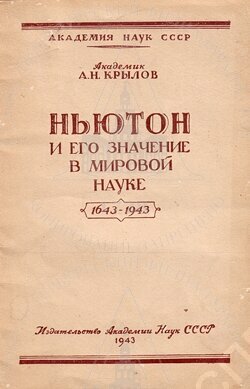 | Крылов А.Н. Ньютон и его значение в мировой науке. 1643-1943. М.; Л.: Изд-во Акад. наук СССР, 1943. Обложка. |