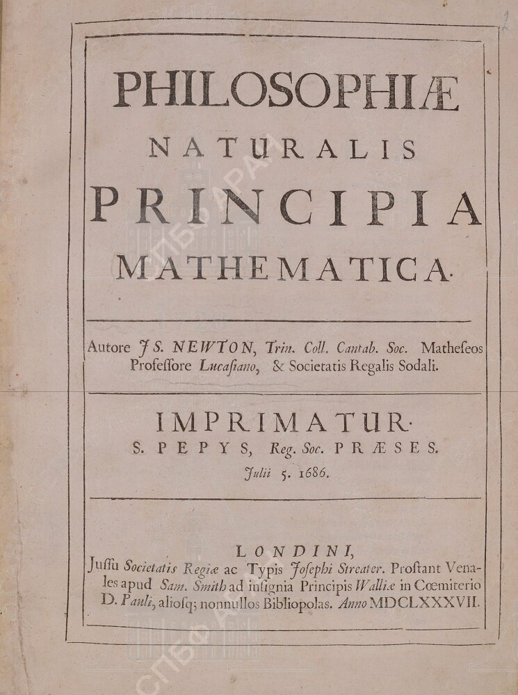 | Newton I. Philosophiae naturalis principia mathematica. Londini, 1686. Титульный лист.
