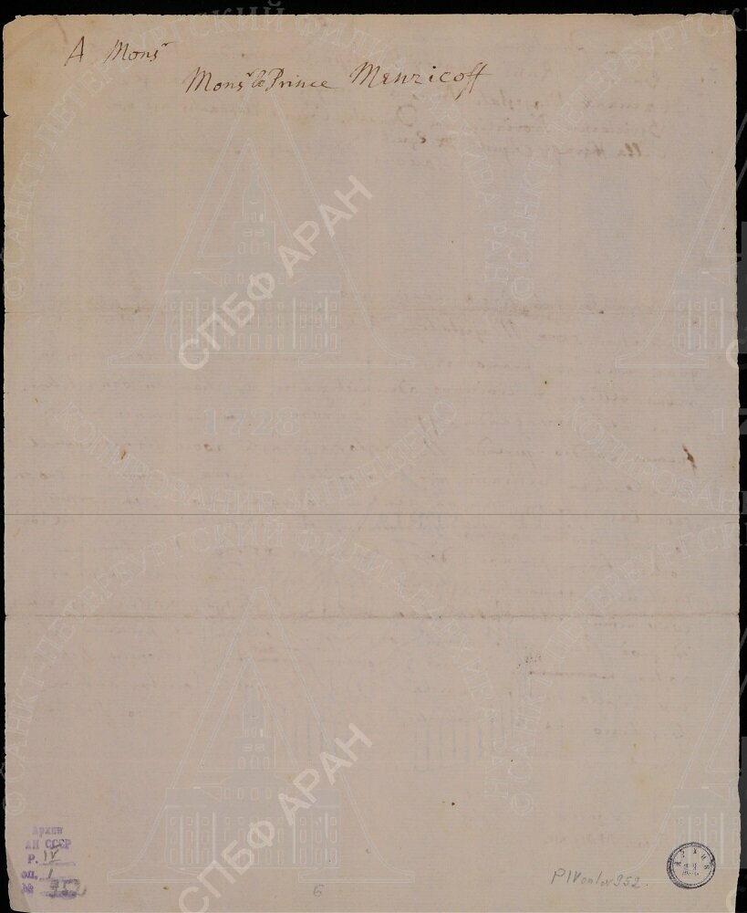 В 1936 г. антикварная фирма Сотбис в Лондоне опубликовала каталог рукописей ньютоновского архива, продававшихся по поручению виконта Лимингтона. В первой части каталога содержится описание химических и алхимических рукописей, большей частью написанных рукой Ньютона. На аукцион были выставлены письмо А.Д. Меншикова Ньютону на французском языке от 23 августа 1714 г. и три автографа Ньютона – черновики ответа Ньютона Меншикову на латинском языке от 21–25 октября 1714 г. Лондонское Королевское общество приобрело автографы Ньютона и один из них принесло в дар АН СССР (Sotheby a. Co. Catalogue of the Newton papers sold by order of the viscount Lymington to whom they have descended from Catherine Conduitt, viscountess Lymington, Greatnice of Sir Isaak Newton. London, 1936. P. 30. № 145).