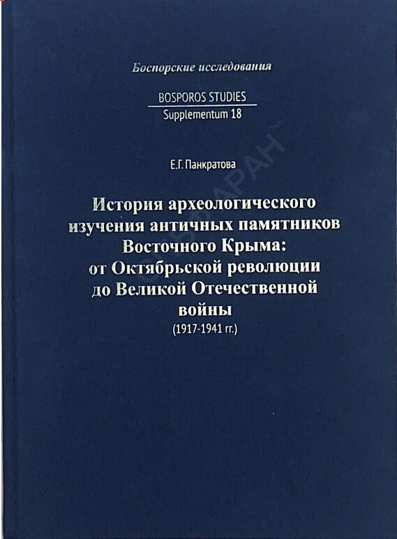 История археологического изучения античных памятников восточного Крыма: от Октябрьской революции до великой Отечественной войны [Текст] : (1917-1941ГГ.) / Е. Г. Панкратова ; ред. В. Н. Зинько. - / СПбФ АРАН; ИИМК РАН; Центр арх. исследований Благотворительного фонда "Деметра". - СПб. : Из-во ООО "Соло-Рич", 2018. - 158 с. : ил. - (Bosporos studies ; supp.18). |
