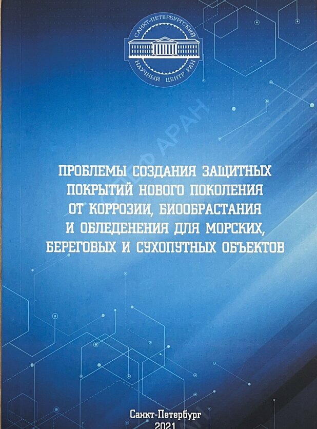 | 4е/П 78 | Проблемы создания защитных покрытий нового поколения от коррозии, биообрастания и обледенения для морских, береговых и сухопутных объектов [монография] / ред.: М. И. Орлова, В. А. Радионов. - / Министерство науки и высшего образования Российской Федерации, Федеральное государственное бюджетное учреждение науки Санкт-Петербургский научный центр Российской академии наук. - СПб. : Изд-во Санкт-Петербургского гос. экономического ун-та, 2021. - 132 с. : граф., ил., табл. |