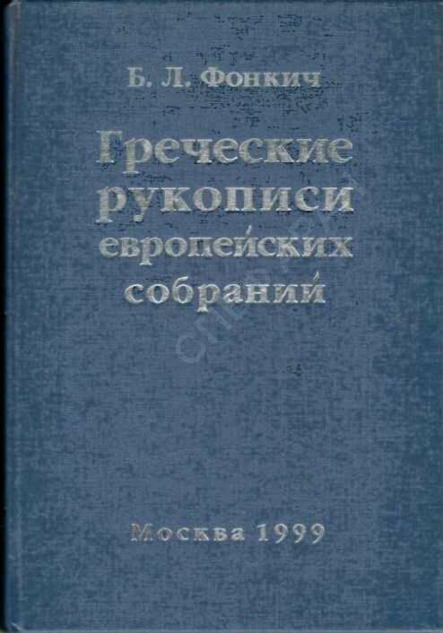 Греческие рукописи европейских собраний [Текст] : Палеографические и кодикологические исследования 1988-1998 гг. / Б. Л. Фронкич. - / РАН. - М. : Индрик, 1999. - 272 с.