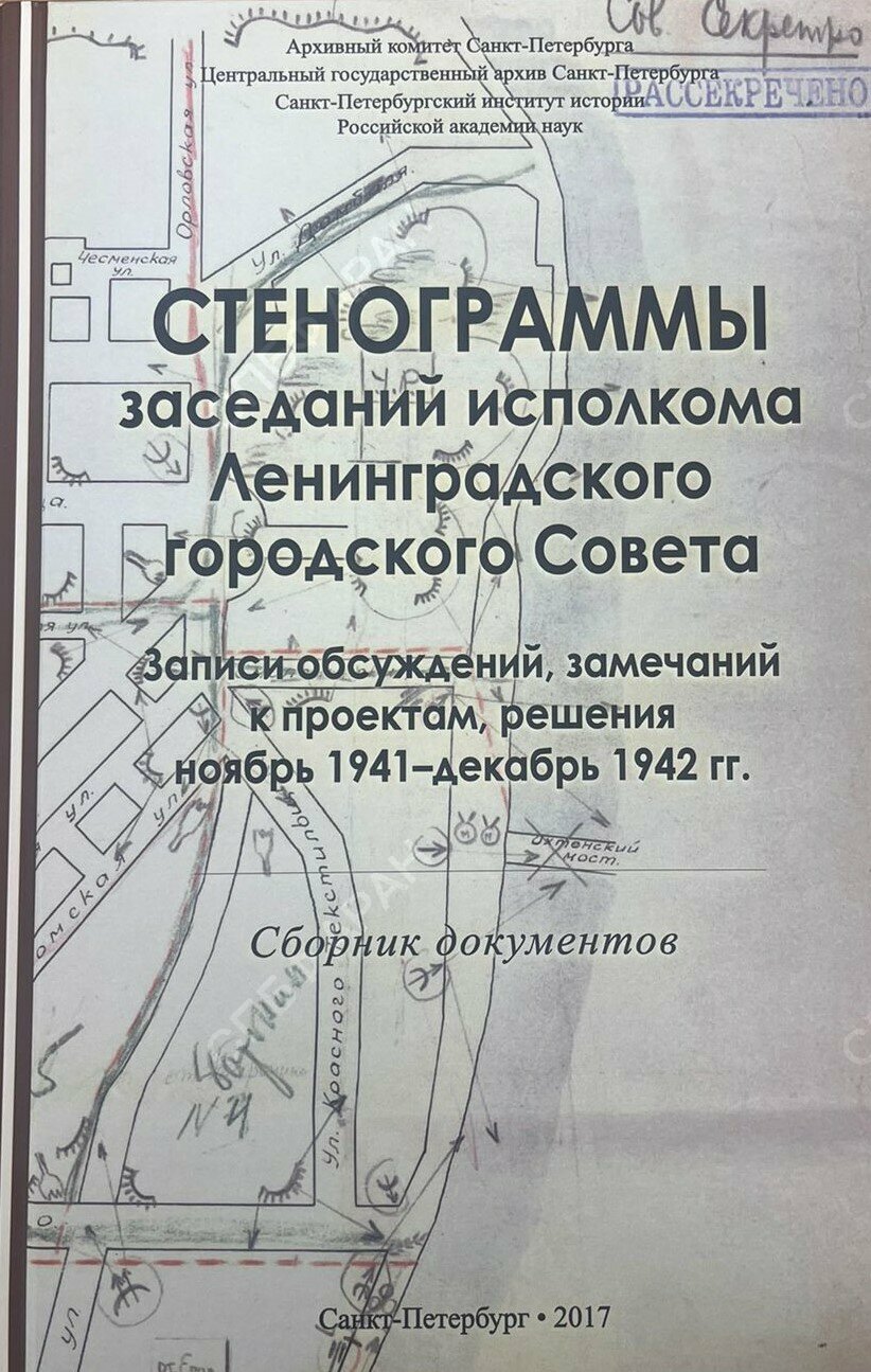 | Стенограммы заседаний исполкома Ленинградского городского Совета [сборник документов]: Записи обсуждений, замечаний к проектам, решения ноябрь 1941-декабрь 1942гг. / ред. А. Н. Чистиков, 2017. - 440 с. |