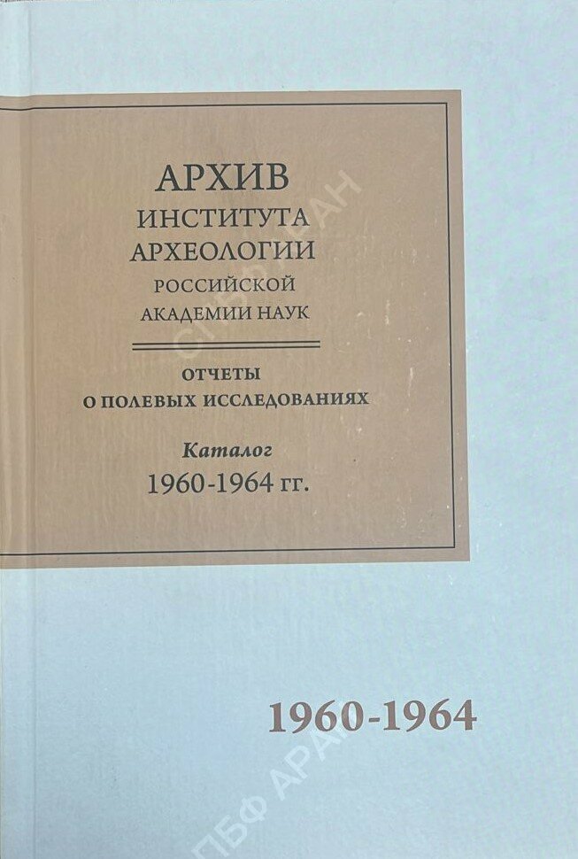 | Научно-отраслевой архив Института археологии РАН: отчеты о полевых исследованиях: каталог 1960-1964 / отв. ред. Н. А. Макаров; отв. ред. П. Г. Гайдуков; сост. У. Ю. Кочкаров, 2011. - 448 с. |