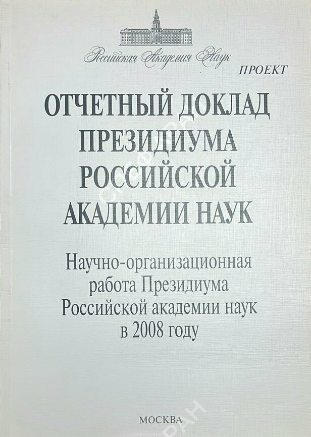 | Отчетный доклад президиума Российской Академии наук. Научно-организационная работа Президиума Российской Академии наук в 2008 году [ПРОЕКТ] / РАН, 2009. - 319 с. |
