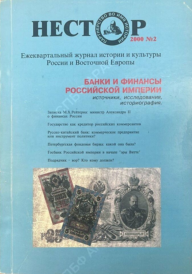 | Нестор: журнал истории и культуры России и Восточной Европы. Вып.2. Банки и финансы Российской империи: Банки и финансы Российской империи: источники, исследования, историография / ред. С. Г. Беляев, 2000. - 453 с. |