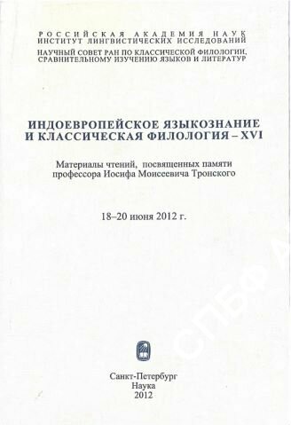 | Индоевропейское языкознание и классическая филология - XVI : Материалы чтений, посвященных памяти профессора Иосифа Моисеевича Тронского. 18-20 июня 2012 г. / Ин-т лингвистических исследований РАН, Научный совет РАН по классической филологии, сравнительному изучению языков и литератур, 2012. - 920 с. |