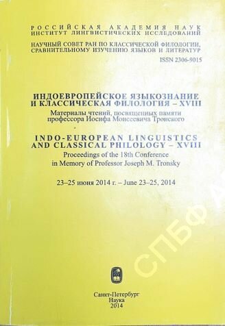 | Индоевропейское языкознание и классическая филология - XVIII (Материалы чтений, посвященных памяти профессора Иосифа Моисеевича Тронского) : 23-25 июня 2014г. / Российская академия наук, Институт лингвистических исследований, Научный совет РАН по классической филологии, сравнительному изучению языков и литератур, 2014. - 980 с. |