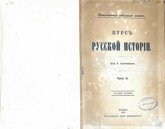 | Ключевский, Василий Осипович. Курс русской истории [Текст]. Ч.2 / Василий Осипович Ключевский. - 2-е изд., Единственный подлинный текст / Все авторские права удерживаются. - М. : Товарищество типографии А.И. Мамонтова, 1908. - 508 с. - 25 р. |