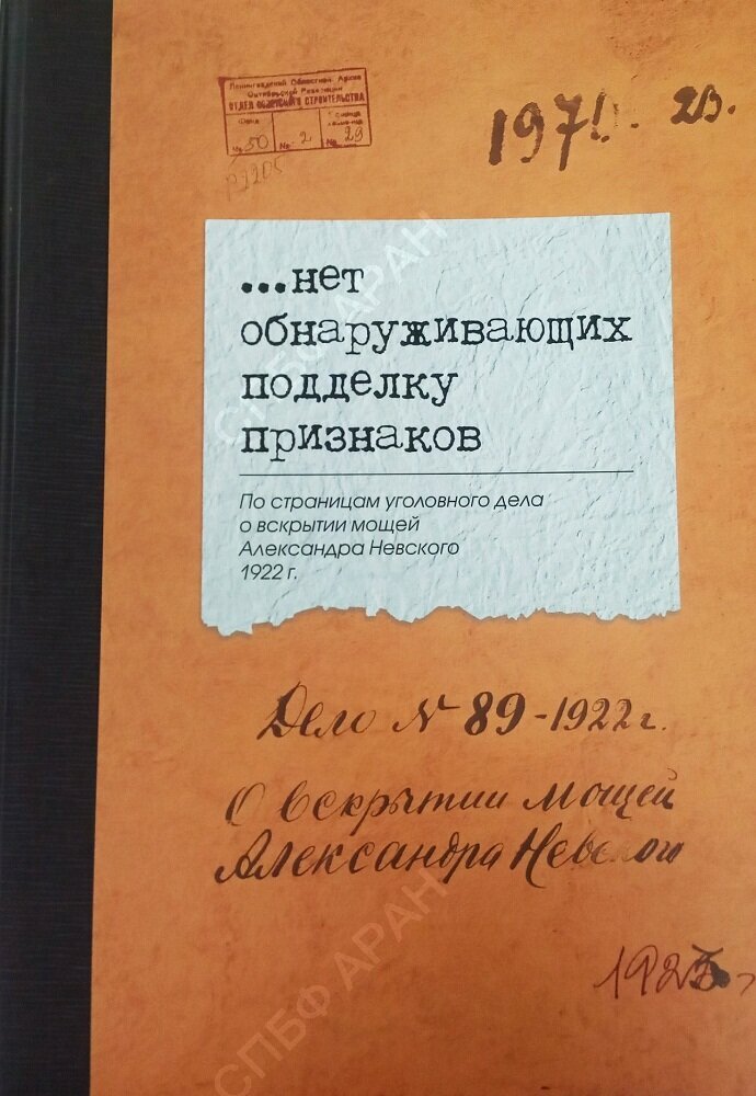 | …Нет обнаруживающих подделку признаков : по страницам уголовного дела о вскрытии мощей Александра Невского 1922 : [сборник архивных документов] / составители: А. Т. Абдукарова [и др.]. - Санкт-Петербург : Нестор-История, 2023. - 232 с. : ил., портр., факс. |